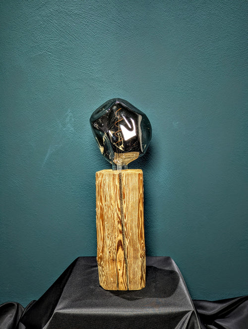 Tischlampe aus Eichenholz mit Metallfuß „Zwischen der Linie der Zeit“ -